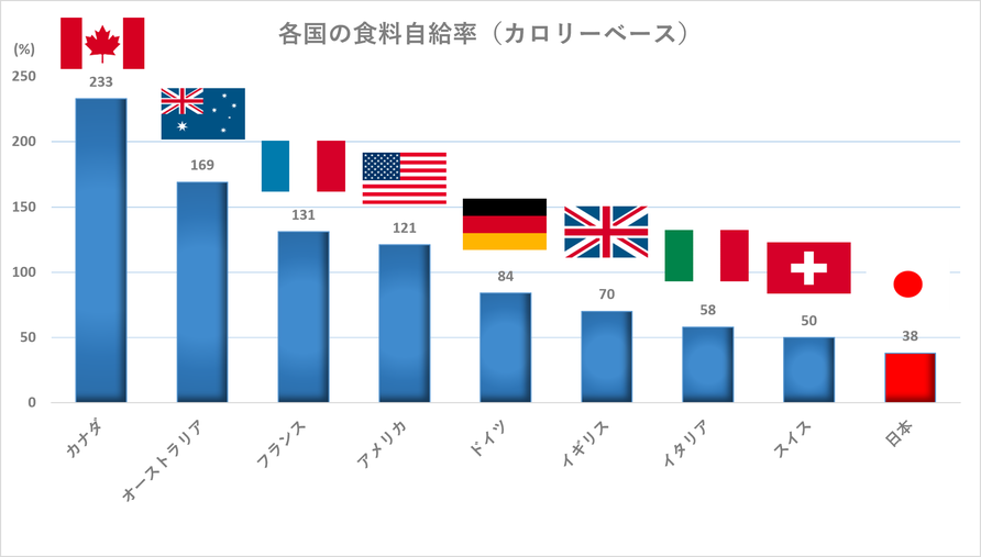 - 出典:農林水産省「世界の食料自給率」に掲載された各国・地域の最新公表値をもとに作成(2023年4月1日現在)。