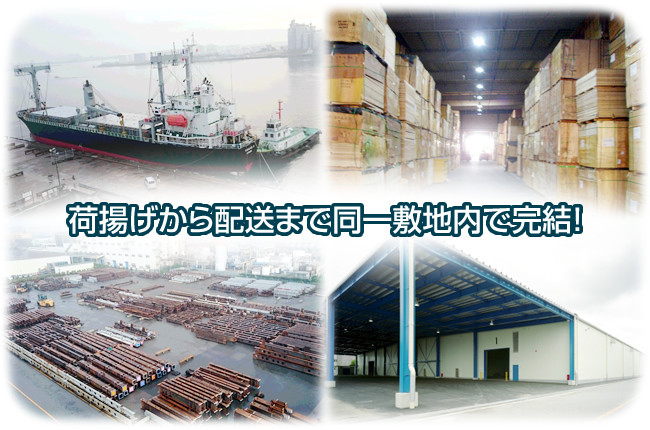 貨物船を敷地内につけることが出来る設備で、物流コストを削減した業務が可能です。